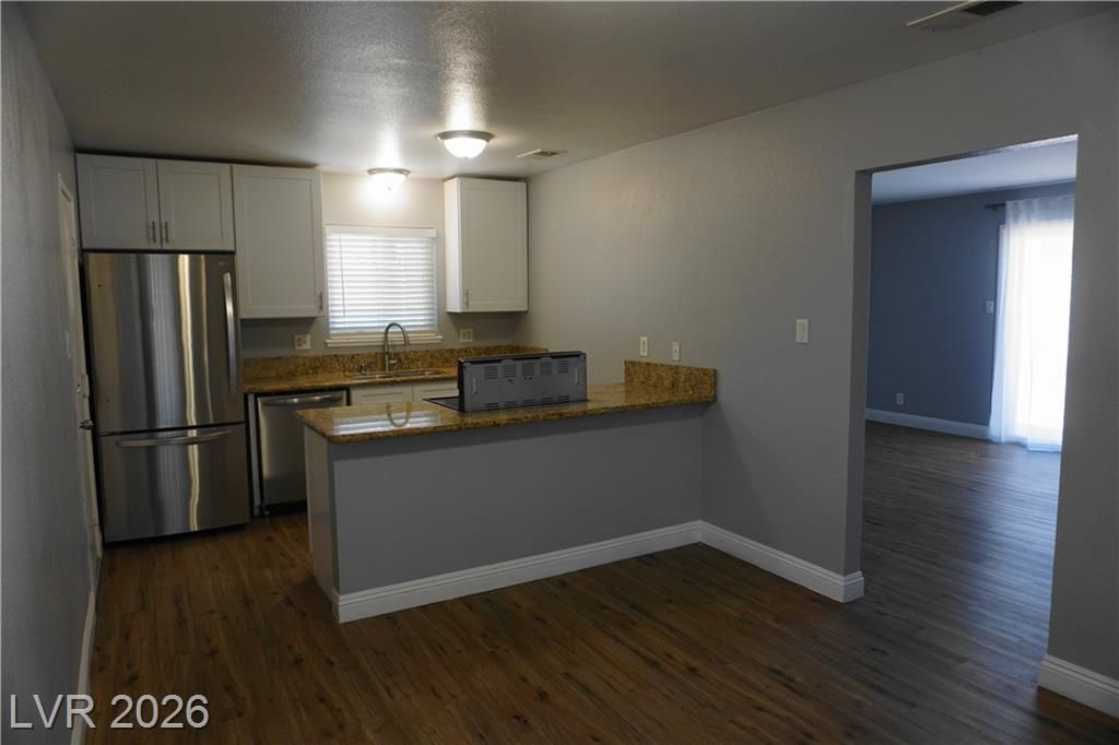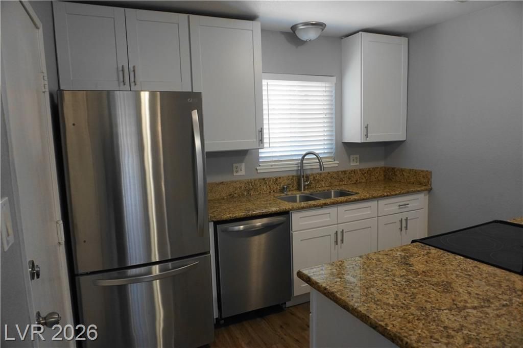 REMODELED! MOVE IN READY! Brand new Luxury Vinyl Plank wood like flooring throughout. No carpet! Kitchen has New White Shaker Style Cabinets, Stainless Steel Appliances, & Granite Countertops. Spacious 4 bedroom 2 bath with Converted garage which can be used as a large family room. Over 1600 sf - spacious yard with no HOA! Newer Double Pane Windows for Energy Efficiency & Lower Power bills! Updated bathrooms with new vanities, mirrors, and flooring. Washer/Dryer included. Conveniently located near shopping, dining, and major roadways. Quick 15 minute drive to the Las Vegas Strip!